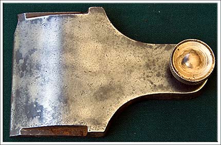 Lever Cap 2 3/8″ Wide, Brass Knurled Screw, Chip On Edge, Marked 43 8 5A.