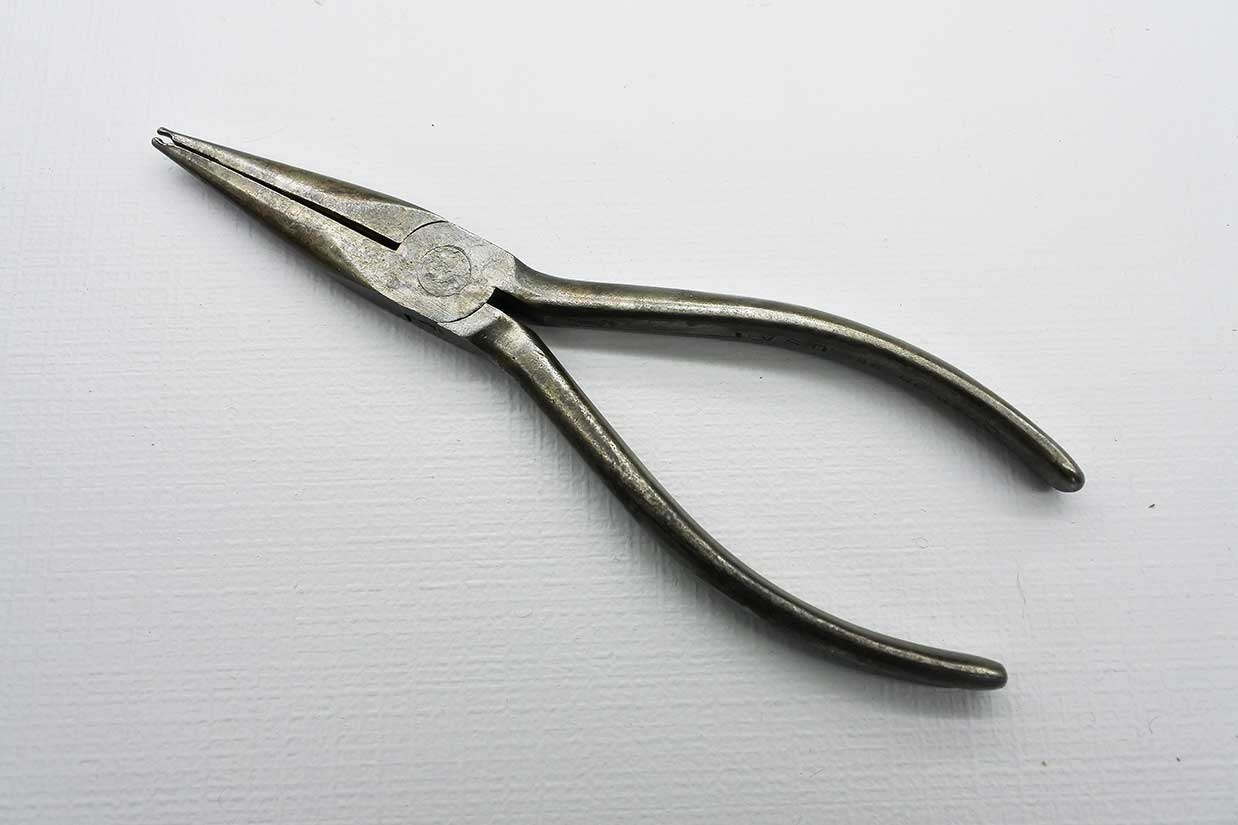 Smooth movement with these Snap On No. 966 needlenose pliers, tip has internal groove, owners marks